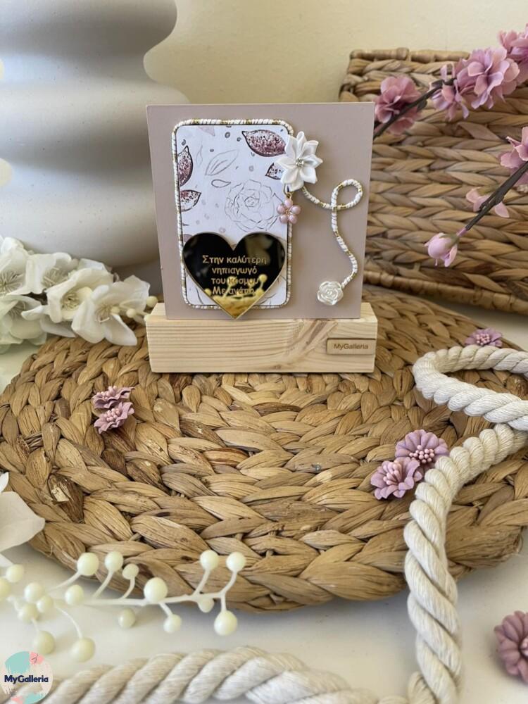 Χειροποίητη επικαθήμενο διακοσμητικό σε πούδρα απόχρωση με ξύλινη φιγούρα ”Στην καλύτερη δασκάλα του κόσμου με αγάπη”