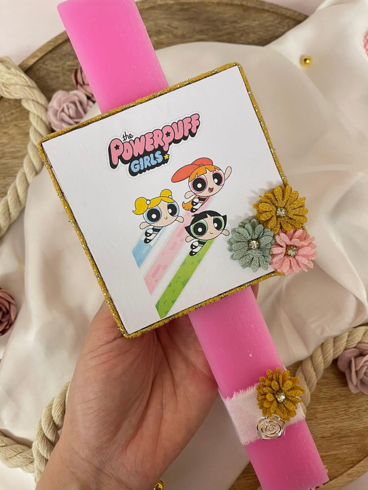 Χειροποίητη αρωματική λαμπάδα Power puff girls
