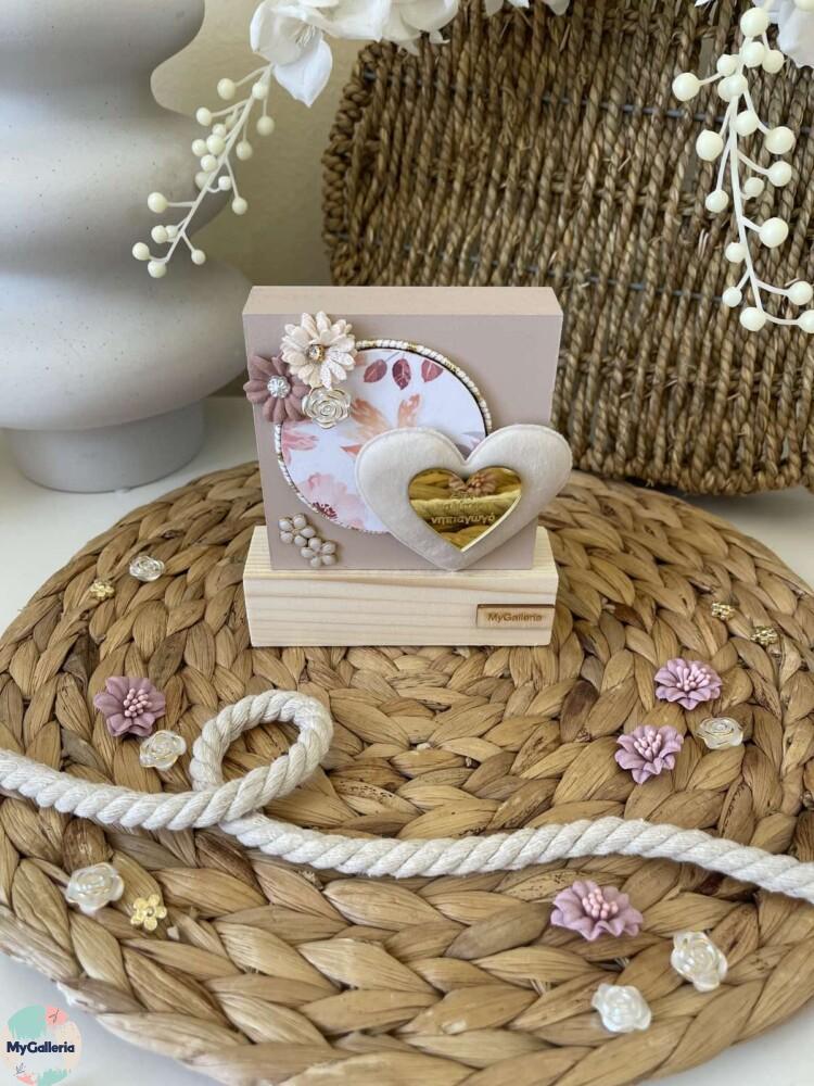 Χειροποίητο επικαθήμενο διακοσμητικό σε ροζ απόχρωση με ξύλινη φιγούρα ” Σας ευχαριστώ για τη πιο όμορφη χρονιά! ”