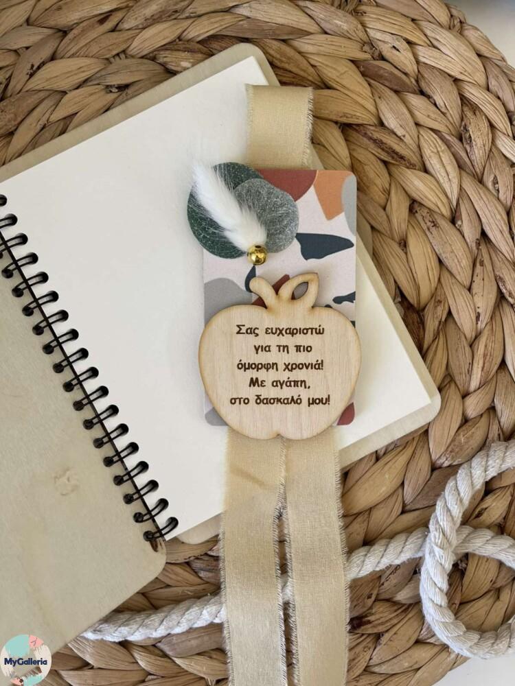 Χειροποίητο επιτραπέζιο διακοσμητικό με ξύλινη φιγούρα ” Ο δάσκαλος… παίρνει ένα χέρι, ανοίγει το μυαλό και αγγίζει την καρδιά”