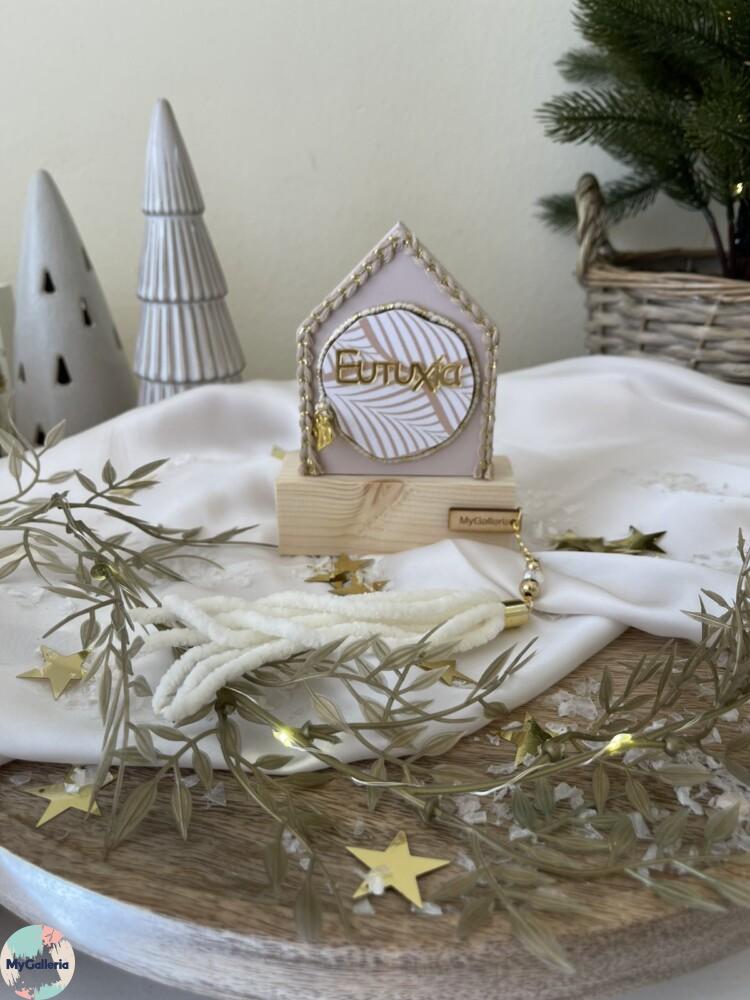 Χειροποίητο ξύλινο διακοσμητικό με φύλλα χρυσού