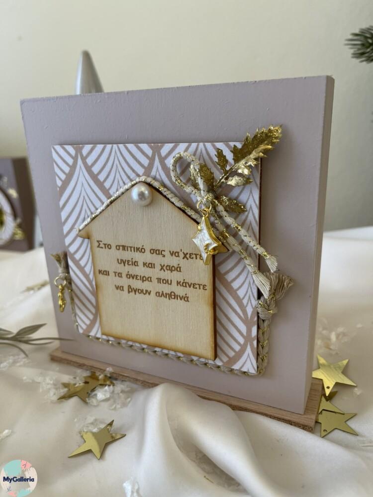 Χειροποίητο ξύλινο διακοσμητικό με φύλλα χρυσού