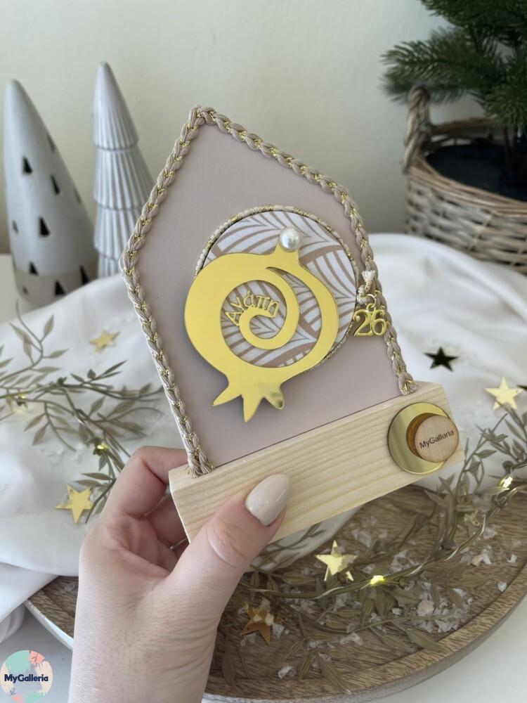 Χειροποίητο ξύλινο διακοσμητικό με φύλλα χρυσού