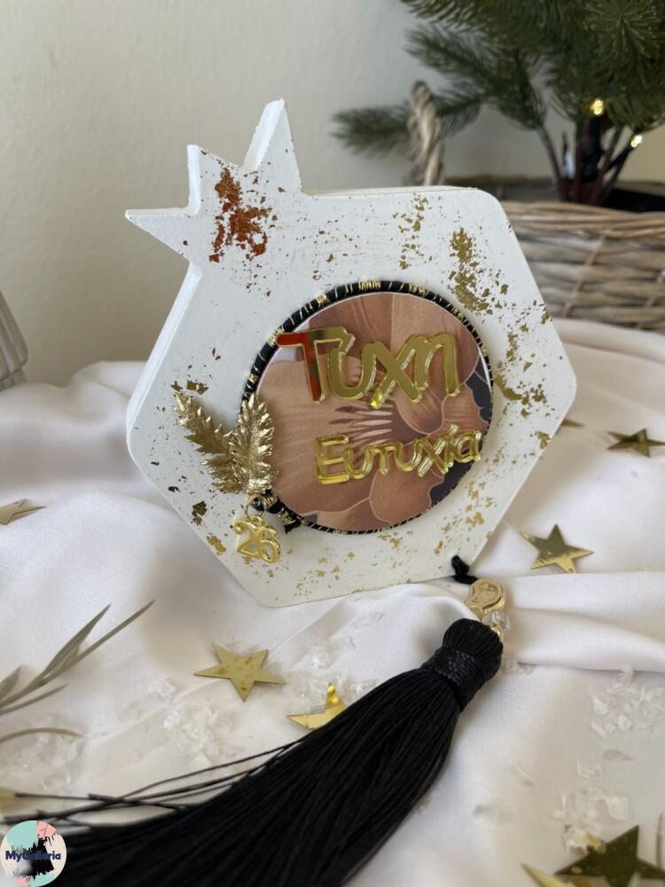 Χειροποίητο ξύλινο διακοσμητικό  με φύλλα χρυσού