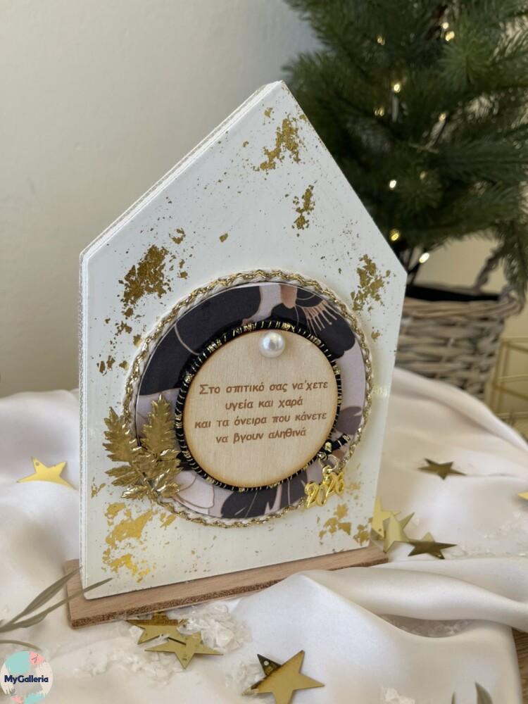 Χειροποίητο ξύλινο διακοσμητικό με φύλλα χρυσού