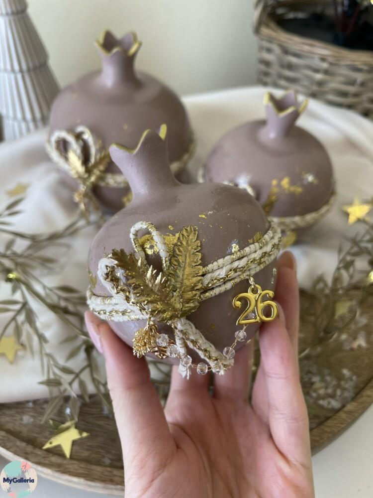 Υλικά: ξύλινο διακοσμητικό ,  οικολογικά χρώματα, τεχνική με φύλλα χρυσού, βελούδινεσ κορδέλες , μεταλλικά στοιχεία