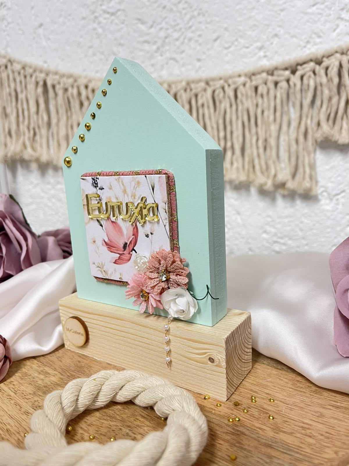 Χειροποίητο επικαθήμενο διακοσμητικό σε μέντα απόχρωση με plexiglass ευχές