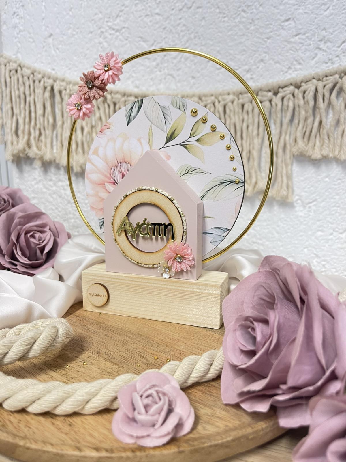 Χειροποίητο  επικαθήμενο διακοσμητικό σε πούδρα  απόχρωση με plexiglass ευχές