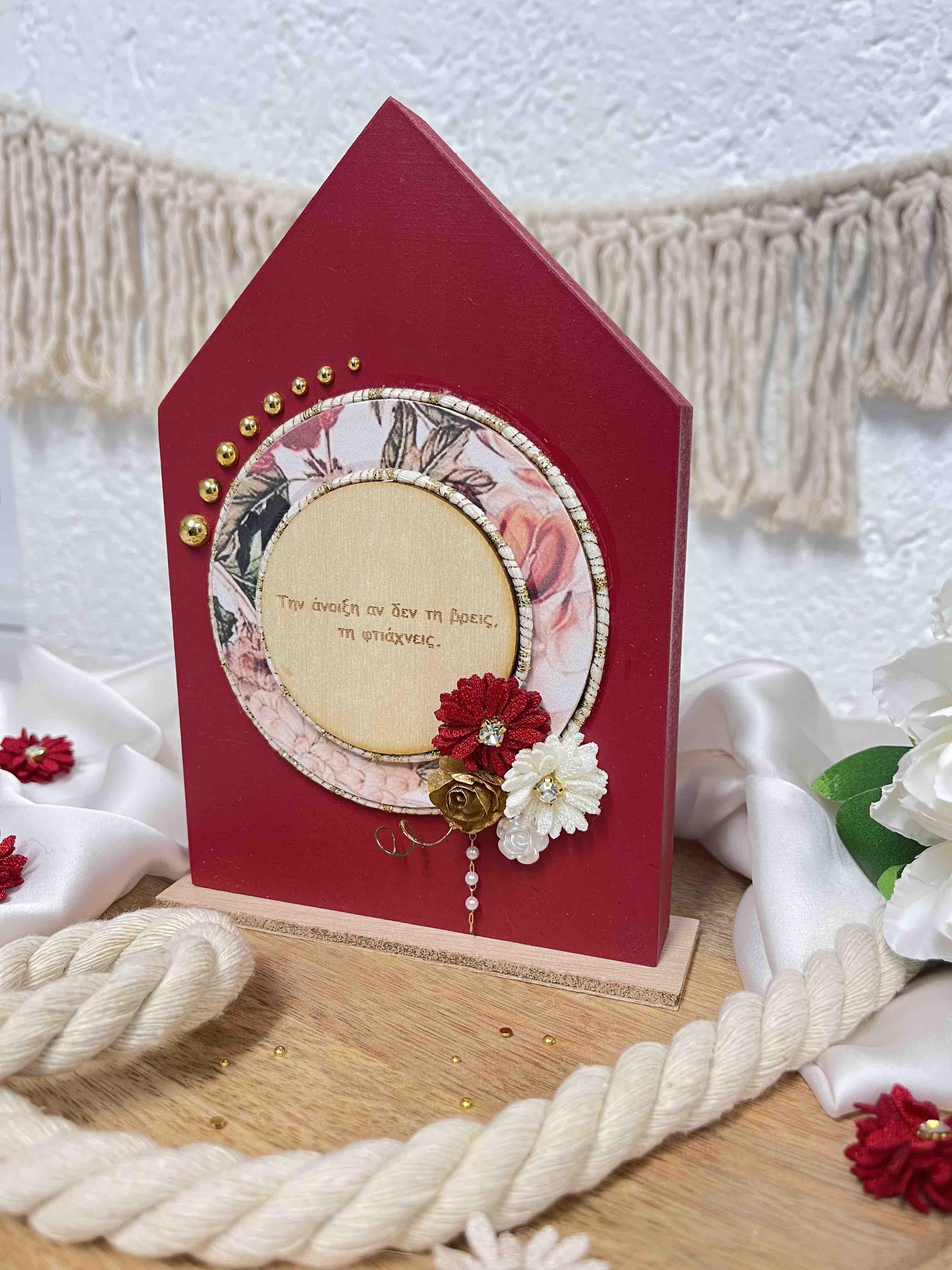 Χειροποίητο επικαθήμενο διακοσμητικό σε κόκκινη απόχρωση με plexiglass ευχές